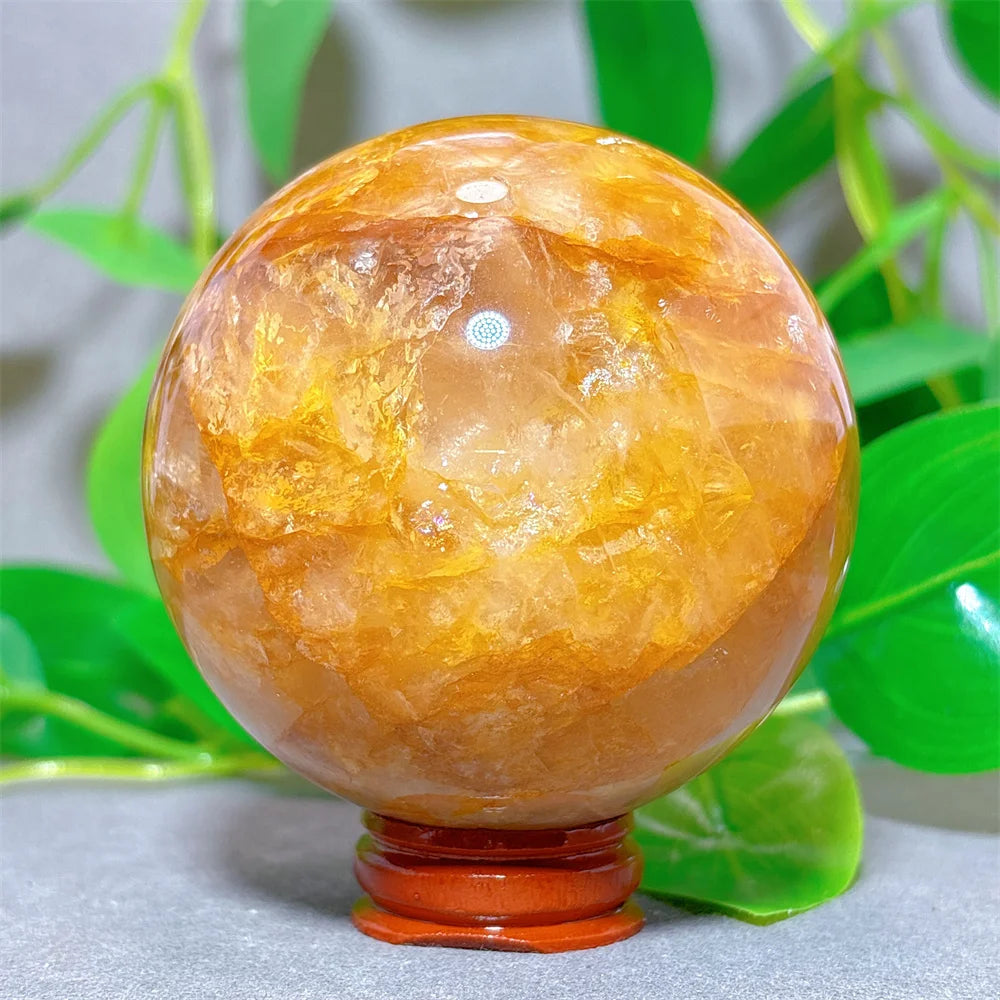 Golden Healer Sphere Crystal Natural Quartz Stone Home Decoration Minerals Love Beautiful Craft Gifts Energy Healing +Stand